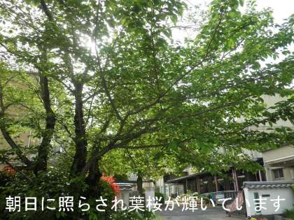 学校の桜の木は,4月下旬から鮮やかな緑の「葉桜」になっています。