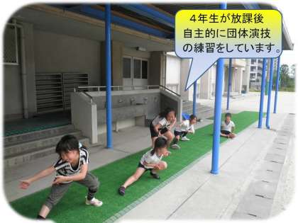 放課後,何やら4年生が渡りローカで踊っていました。運動会の団体演技の練習を自主的にしていたとのこと。