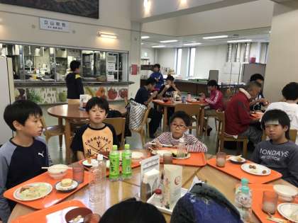 5:30に起床し,朝ご飯を食べました。登山に向けて,エネルギーチャージ。