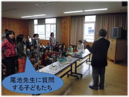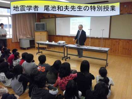 今回,醍醐西小学校には,地震学者で元京都大学総長の尾池和夫先生にきていただきました。