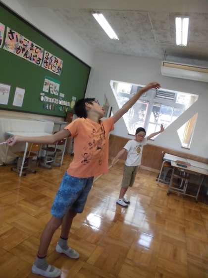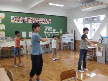 高学年は,運動会の団体演技の練習を行いました。「動き」と「回数」を意識して練習しています。