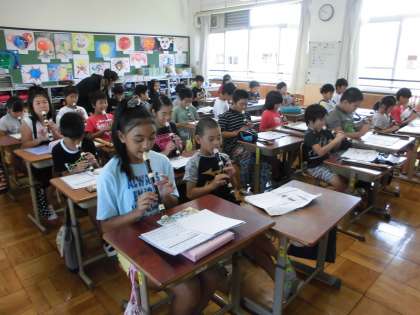 4年生の教室では、とてもすてきなリコーダーの音色が響いていました。