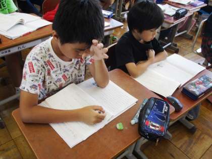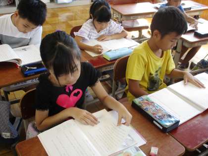 『ちいちゃんのかげおくり』の学習が始まりました。わからないところに線を引いています。「戦争の話や。」「亡くなったのかな。」いろいろなことを感じながら読んでいました。