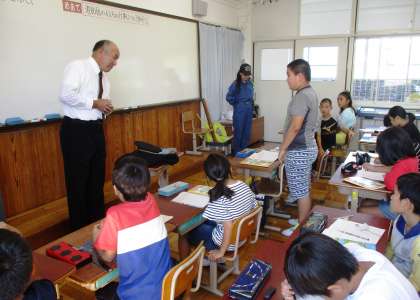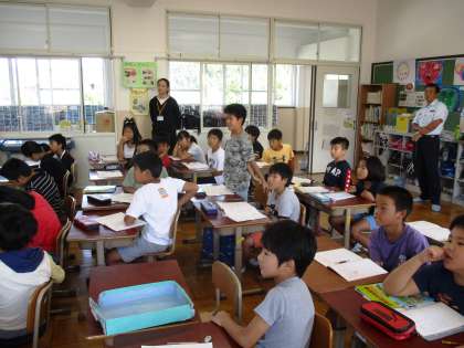 消防分団の方に来ていただき,活動内容や,普段から気を付けられることなどについて教えていただきました。子どもたちからも質問をし,いろいろな話を聞くことができました。京都市では,年間約250件の火事が起きること,消防分団には18歳以上であれば入ることができることなどを教えていただきました。
