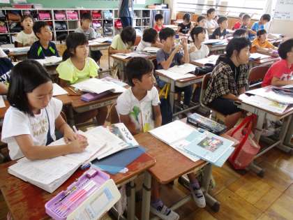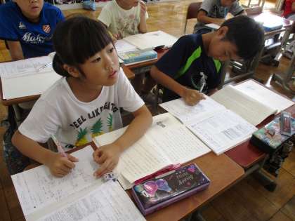 2つのかげおくりの場面の間にどんな出来事があったのかを読み取っています。「青い空がなくなったんだ…」いろいろなことに気づいてきました。