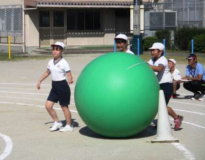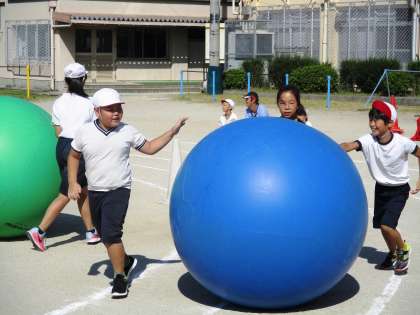 たてわり種目「大玉ころがし」の練習をしました。ルールを確認して実際にやってみました。高学年が低学年のスピードに合わせながら,みんな楽しそうに競争していました。