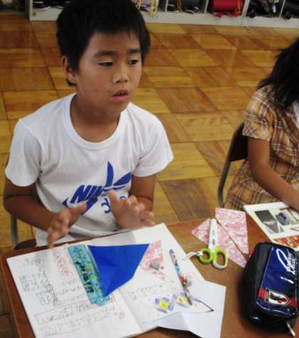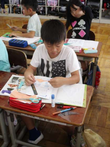 折り紙を使って三角形を作り,性質について調べています。
