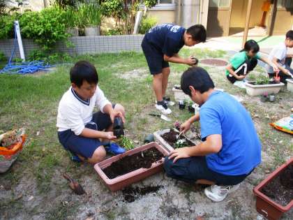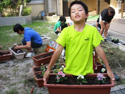 パンジーやなでしこなど季節の花の苗を植えました。きれいに咲くといいですね。