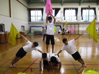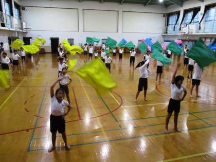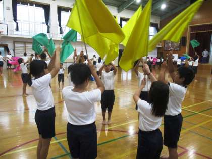 あいにくの天候のため,体育館での練習になりました。動きもそろってきました。