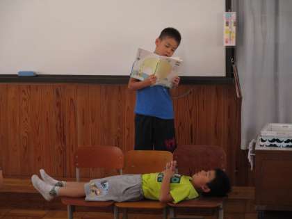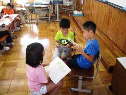 『お手紙』の音読劇です。動きをつけたり,工夫したりしているところについて感想を伝え合いました。