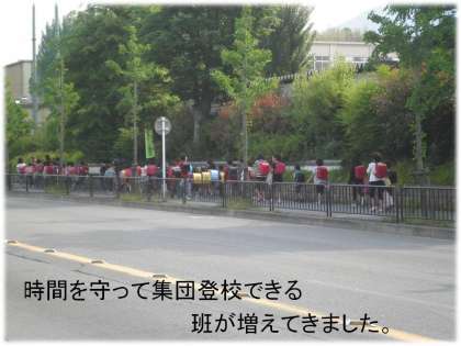 GWが明けて2週間目に入っています。今年は,朝の集団登校が時間通りに,きちんと並んで登校できる班は増えています。