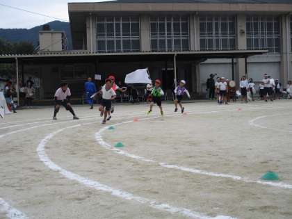 午前最後の種目「赤白対抗リレー(1〜3年)」。