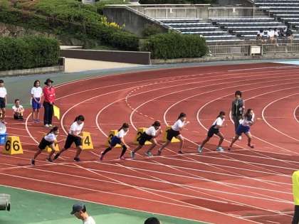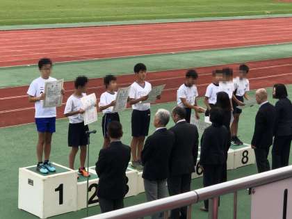 10月22日にたけびしスタジアム京都で,陸上記録会・持久走記録会が行われ,6年生が21名参加しました。本校児童が,50mハードル走で4位に入賞しました!
