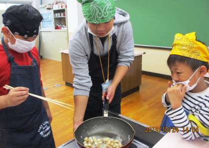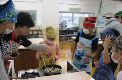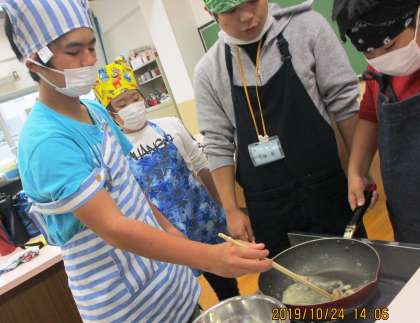 「グループのメンバーで協力して仲良く作ろう」をめあてにし、自分たちで声かけをしながら調理を進める姿が見られました。