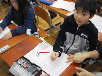 10のまとまりを作って,さくらんぼ図に表して,くりあがりのたし算をしています。慣れてきたようで,どんどん計算に取り組んでいます。
