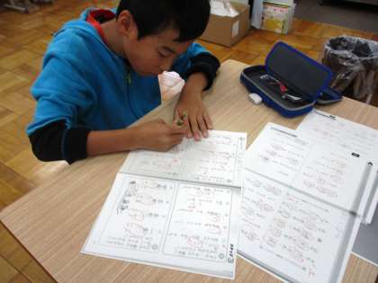 漢字検定に向けて,学習をしています。丁寧に書いています。