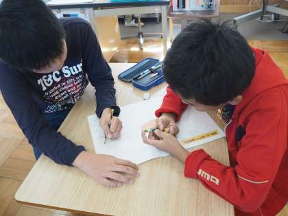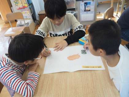 地下鉄の駅の名前を書き,線路をつなげました。2つのグループに分かれてみんなで思い出して書き上げていきます。