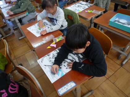 算数で「かたちづくり」の学習をしています。