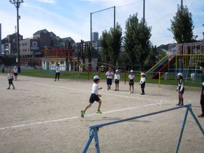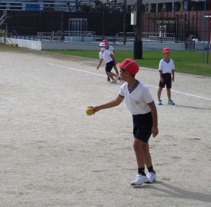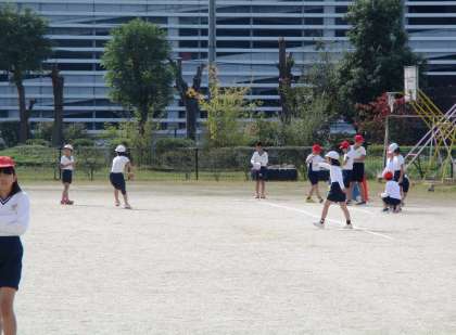 ハンドベースボールをしました。ルールを確認しながら進めています。仲よくチームで進めていけるといいですね。