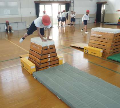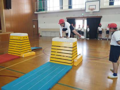 色々な高さや技に積極的に挑戦しています。順番を待っている間も友だちを応援している姿が見られました。