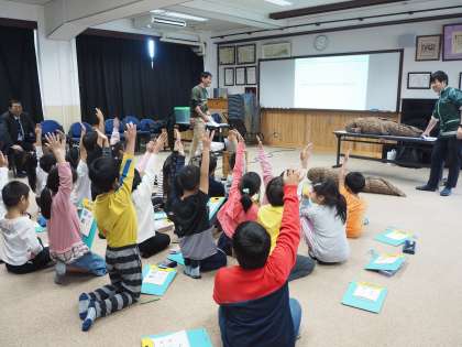 京都水族館の職員さんに来ていただき,海の生き物についての学習をしました。天然記念物であるオオサンショウウオの身体の仕組みや住んでいる場所などを教えて頂きました。