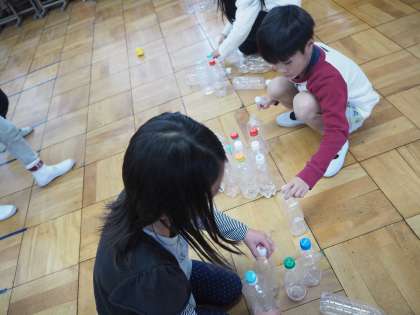 1・2年生合同でお楽しみ会を行いました。この日のために,2年生は準備をしてきました。お楽しみ会の最中も,司会進行やゲームの準備など,1年生に楽しんでもらうために頑張っている姿が見られました。