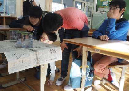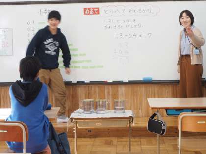 少数の足し算について学習しました。実際に水を使って「増える」ということを学びました。