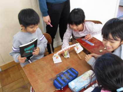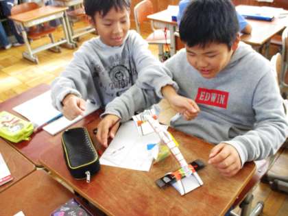 三角定規と鉛筆ではどちらが重いか,どのようにくらべたらよいかについて工夫しながら考えました。