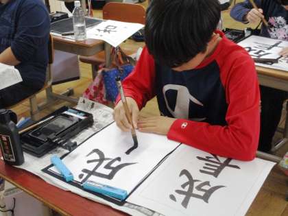 筆順に気を付けながら書きました。はねやはらいもしっかり書くことができるようになりました。細筆も安定して小さい字が書けるようになっています。