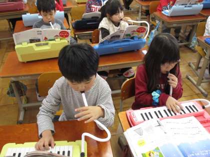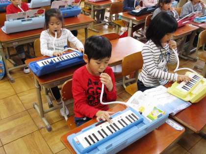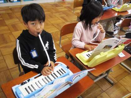 鍵盤ハーモニカで「きらきらぼし」を演奏しています。指づかいに気を付けて練習しました。