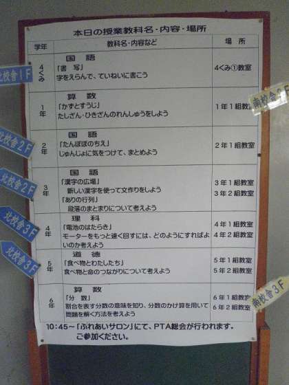 本日25日(水)は授業参観日になっています。その後,PTA総会が開かれます。