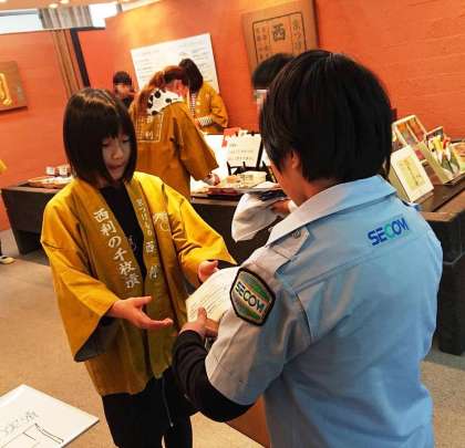 ブース毎にまとまって,他の学校の友だちとも一緒に食べました。