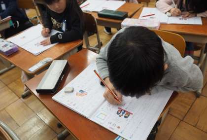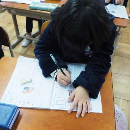 新しい漢字を学習しています。「口」が丸くならないように気を付けました。字だけでなく,姿勢にも気を付けて書いています。