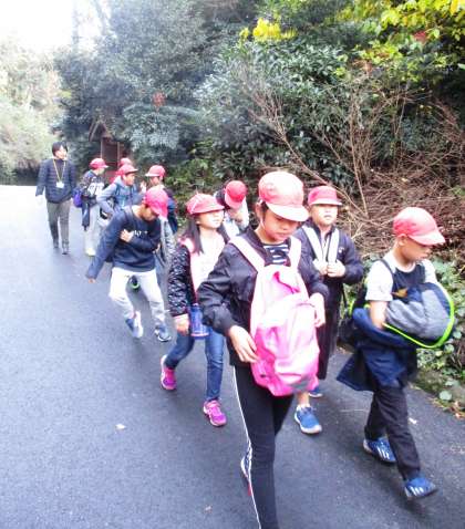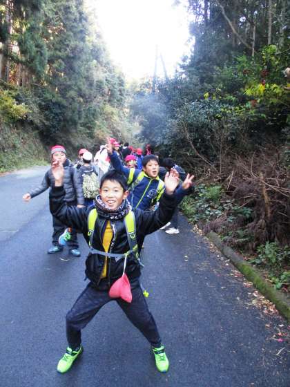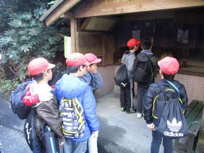 小関峠まで急な坂道を登りきった峠では,喜一堂のお地蔵様にお参りしている子もいました。「いつまで歩くの?」と不安そうな表情をしていますが,まだまだ歩きます!