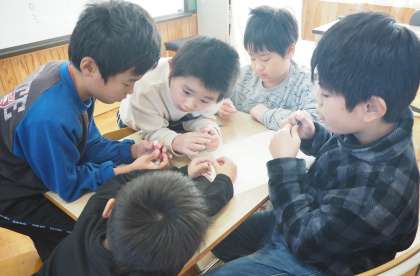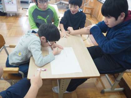2年生との共同学習に向けて,準備を進めています。今日は,高学年を中心にゲームのルールについて話し合いました。