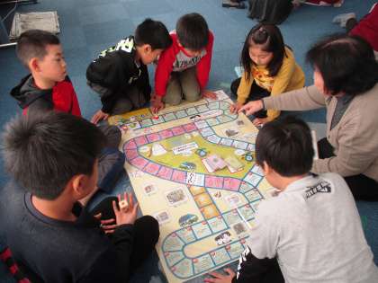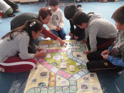 お話を聞いた後は,女性会の方にご用意していただいたエコすごろくをして楽しみながらエコについて考えることができました。