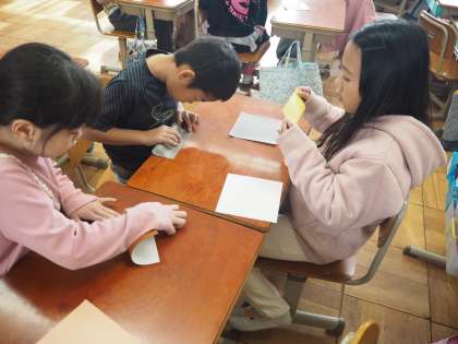 なかよしペアで行うクリスマスパーティーの準備を行っています。どんな飾り付けにしようか,おわりの言葉はどんなことを話そうか,1年生に楽しんでもらうためにたくさん考えています。