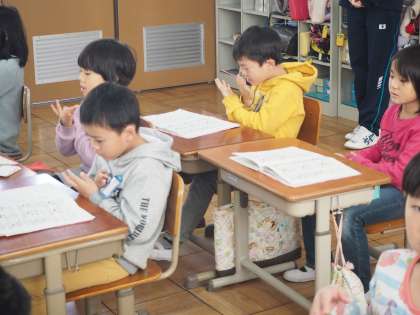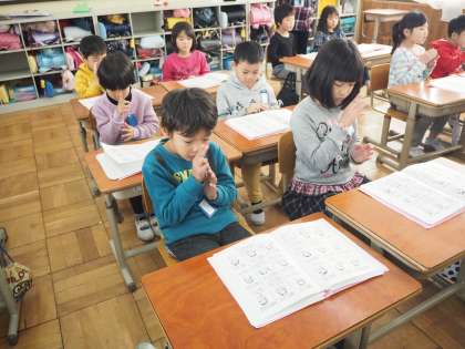 道徳の時間に学習した手話を使って,「せかい中の子どもたちが」「さんぽ」「ともだちになるために」を歌いました。
