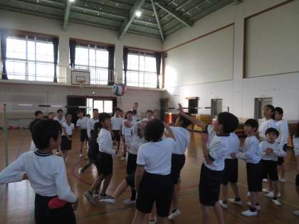 会の前半は,全員で教育実習の先生が好きなバレーボールとハンディーキラーをして楽しみました。先生にも子どもたちにも笑顔があふれていました。