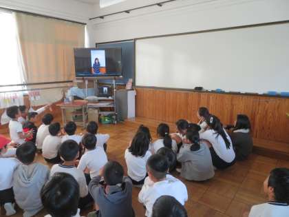 最後に,4年生の子どもたちと教育実習の先生の日々をまとめたムービーを鑑賞しました。ムービーの中にもたくさんの笑顔があふれていました。