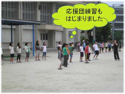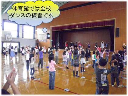今週から中間休みは,運動会の取組(練習)が入っています。運動場では「赤白の応援団」の練習,そして,体育館では,「全校ダンス」の練習を同時進行でがんばっています。