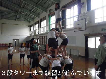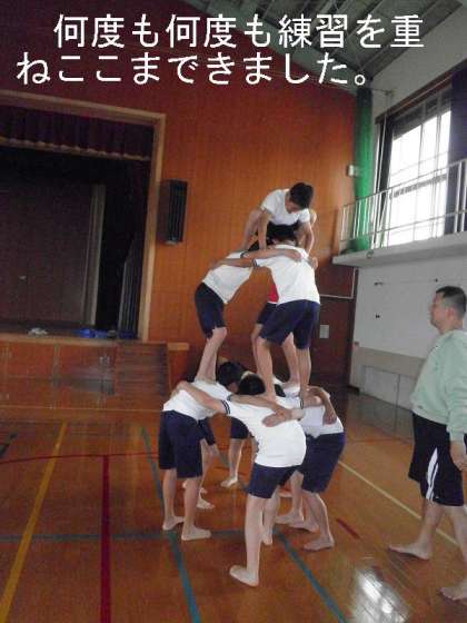 何度も何度も練習を重ねてきた組体操も,最後の技の練習に入りました。