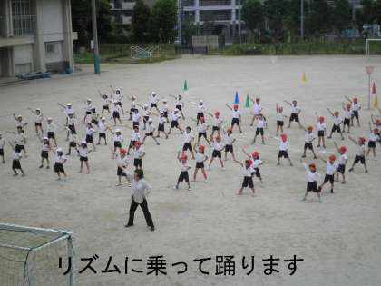 しっかり先生の動きを見て,遅れないように踊ります。