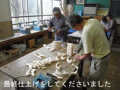 今日は,地域の方がクラフト「木馬」作りの最終仕上げをしてくださいました。