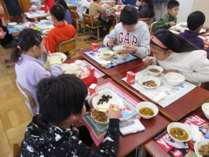 冬休み明け初めての給食も,みんなおいしくいただきました。