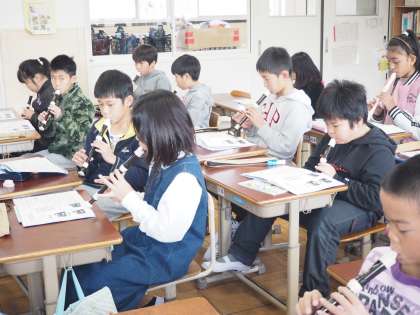 高音の息づかいに気を付けながら演奏しました。お誕生日の友だちのために,みんなで「ハッピーバースデイトゥユー」を演奏してお祝いしました。