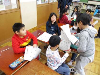 『いいところさがし』をしました。友だちのよいところを探し,伝え合いました。