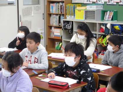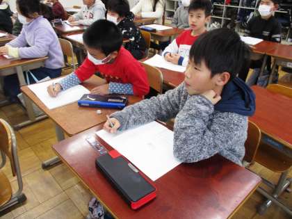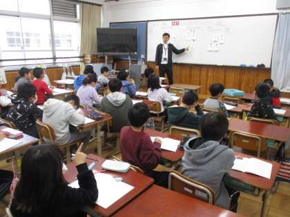 分数の学習をしています。仮分数や真分数などどんなきまりで分けられているのかについて考えました。