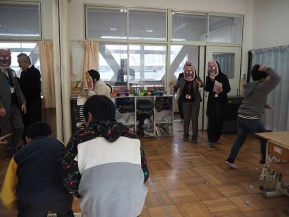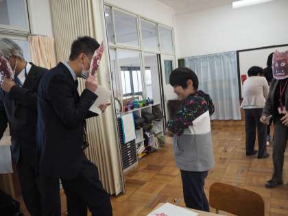 本日,支部校長会がありました。伏見東支部の校長先生たちが鬼になってくれました。子どもたちは豆まき大会を楽しみました。