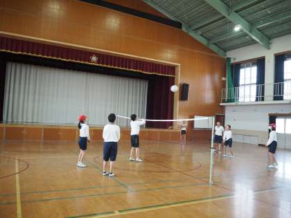 ソフトボールをしました。普段使っているバレーボールと違うので,力の入れ方も工夫しました。